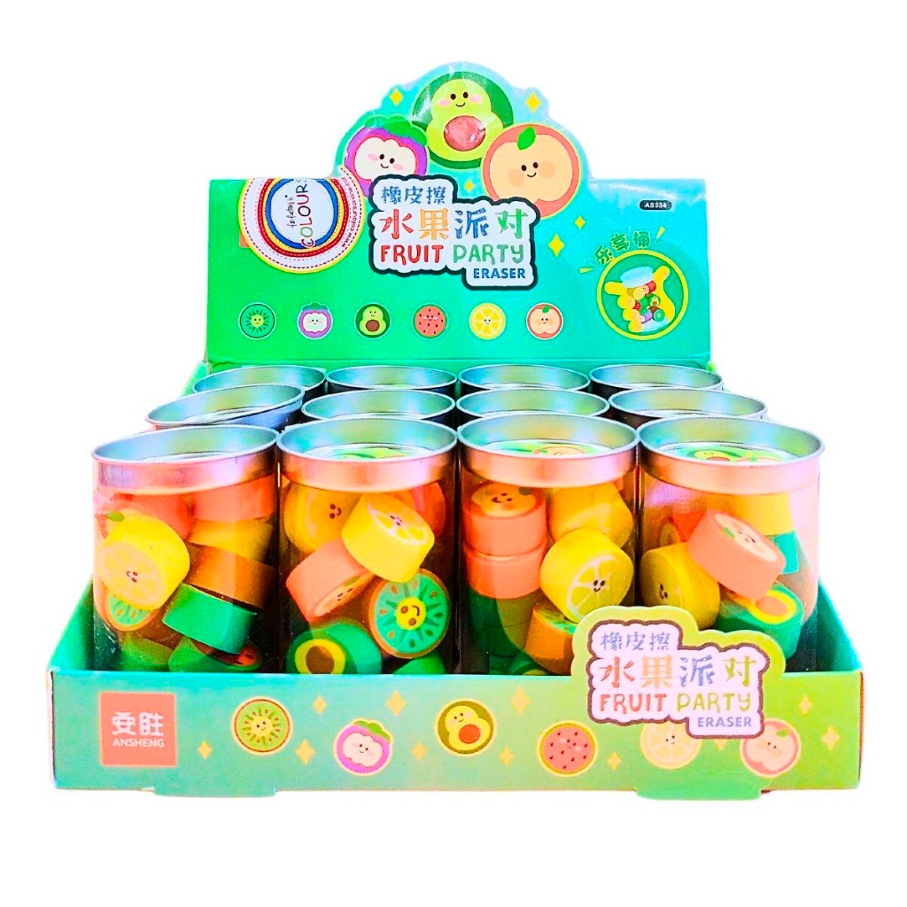 GOMA DE LAPIZ FRUTAS EN BARRILx12u.