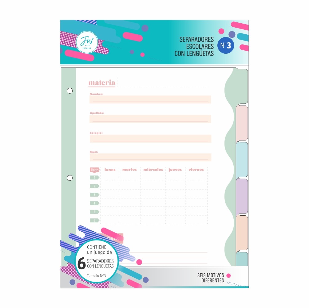 CARATULAS ESC.N*3x6hjs.C/OREJAS PASTEL FW