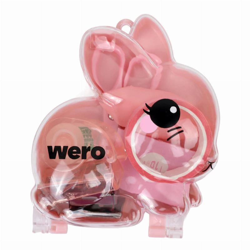 SET PARA ESCRITORIO MINI RABBIT (CINTA ADHESIVA CON DISPENSER-WHASHI TAPE-ABROCHADORA-BROCHES-TIJERA-RESALTADOR)