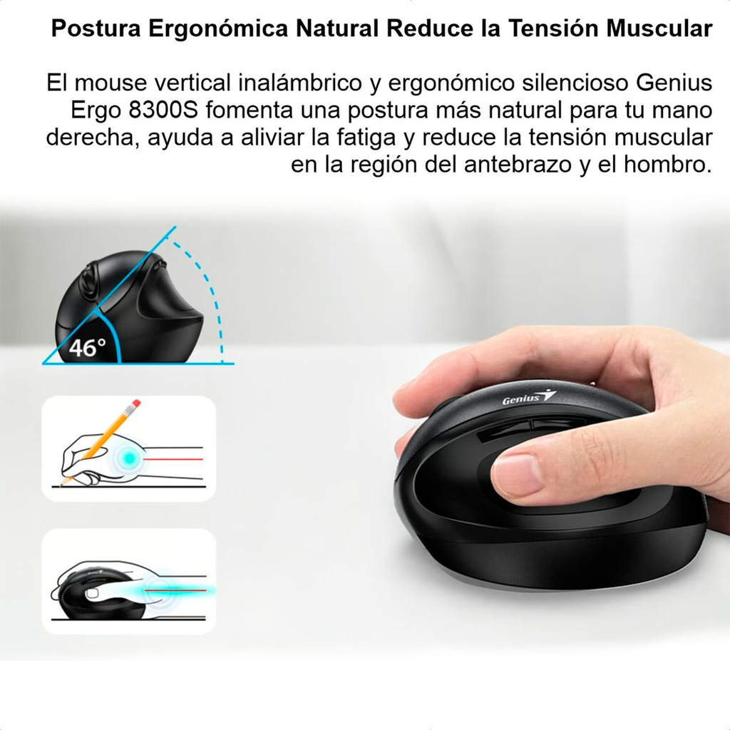 MOUSE INALAM. VERTICAL ERGO 830 USB NEGRO GENIUS